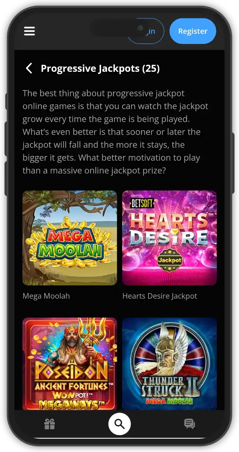 Type of games BaccaratBlackjackLive dealerMegaways slotsPokerProgressive slotsRouletteSlotsVideo poker