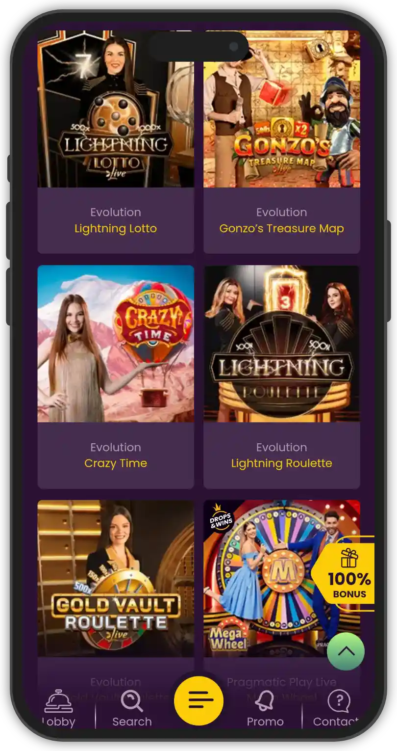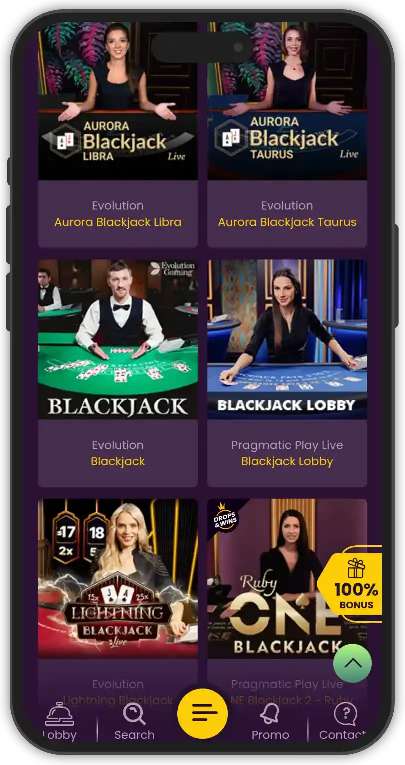 Pragmatic Play Live’s games can also be seen in the lobby, so you have a range of titles to enjoy. Whether it’s classic blackjack, a game of live roulette, or one of the exciting live dealer shows, Bizzo’s live casino is as good as it gets.
