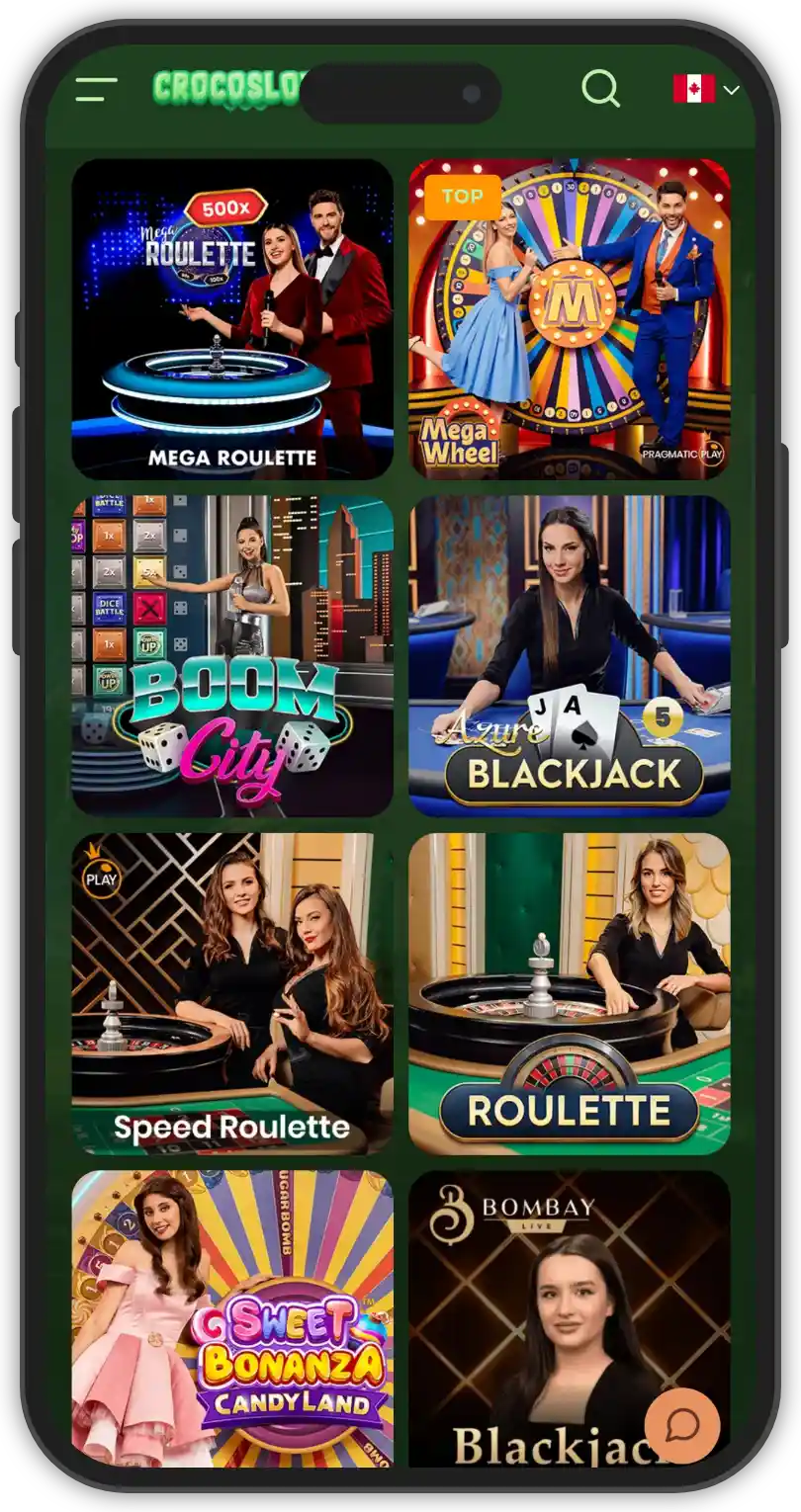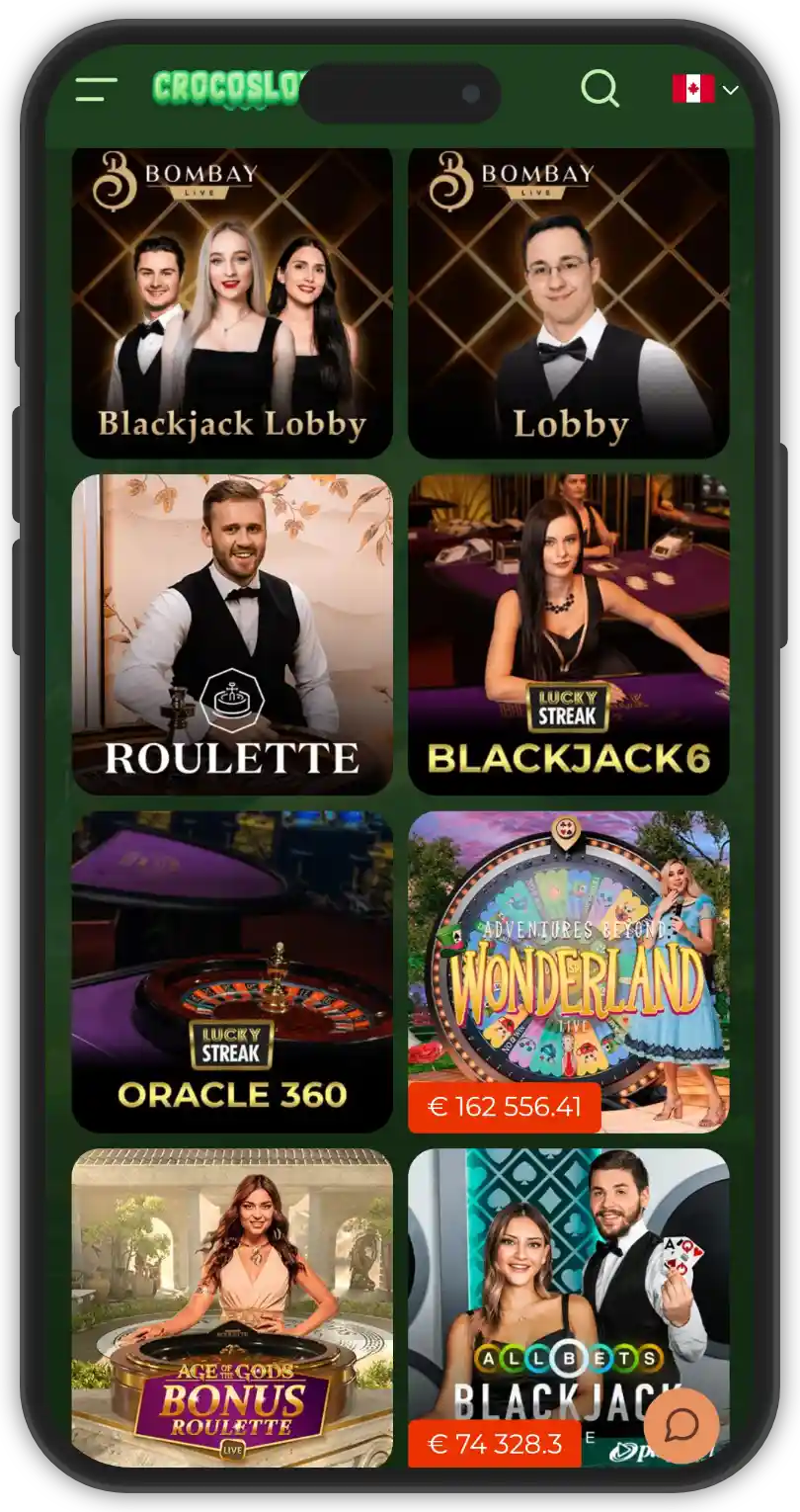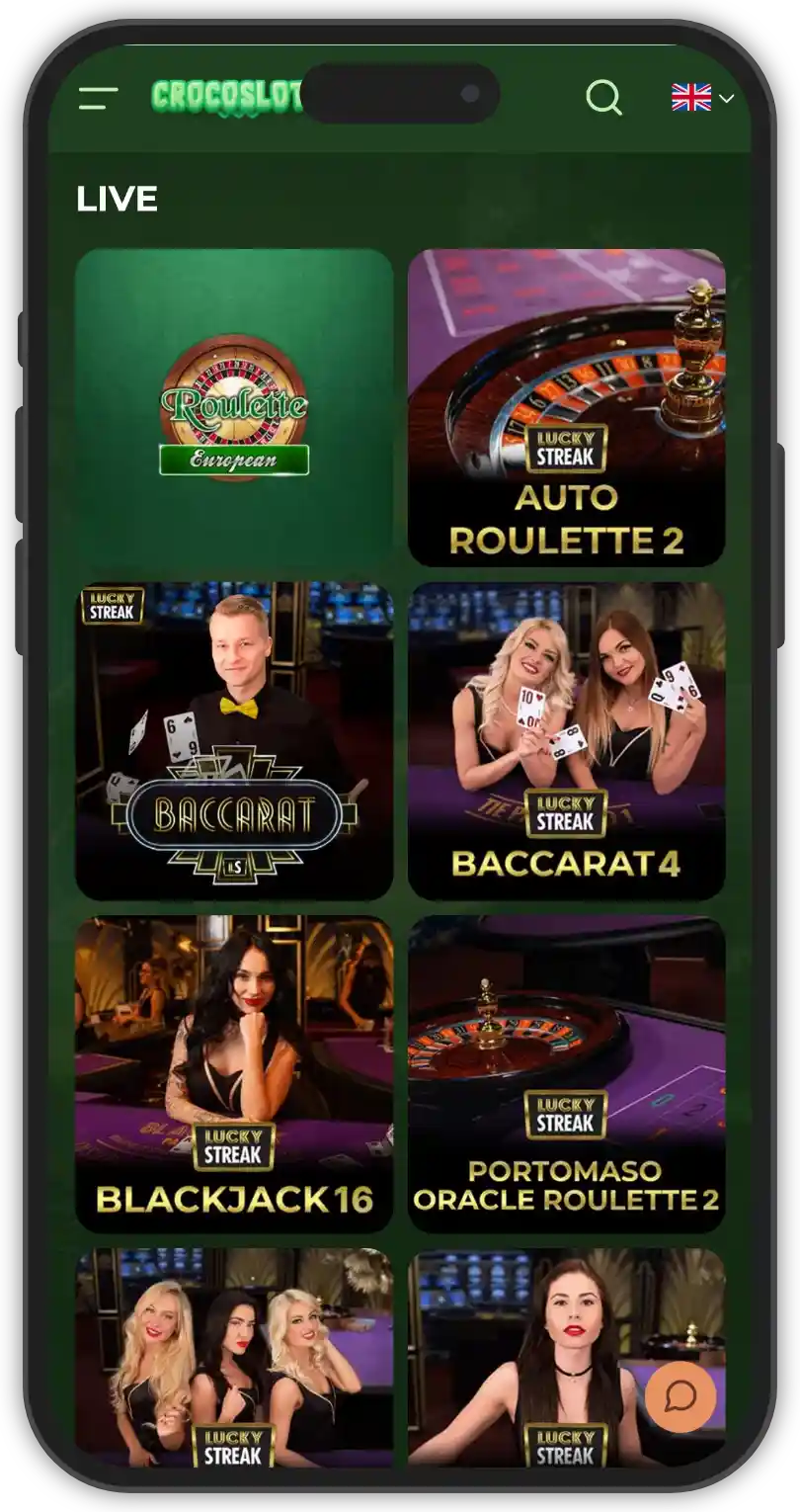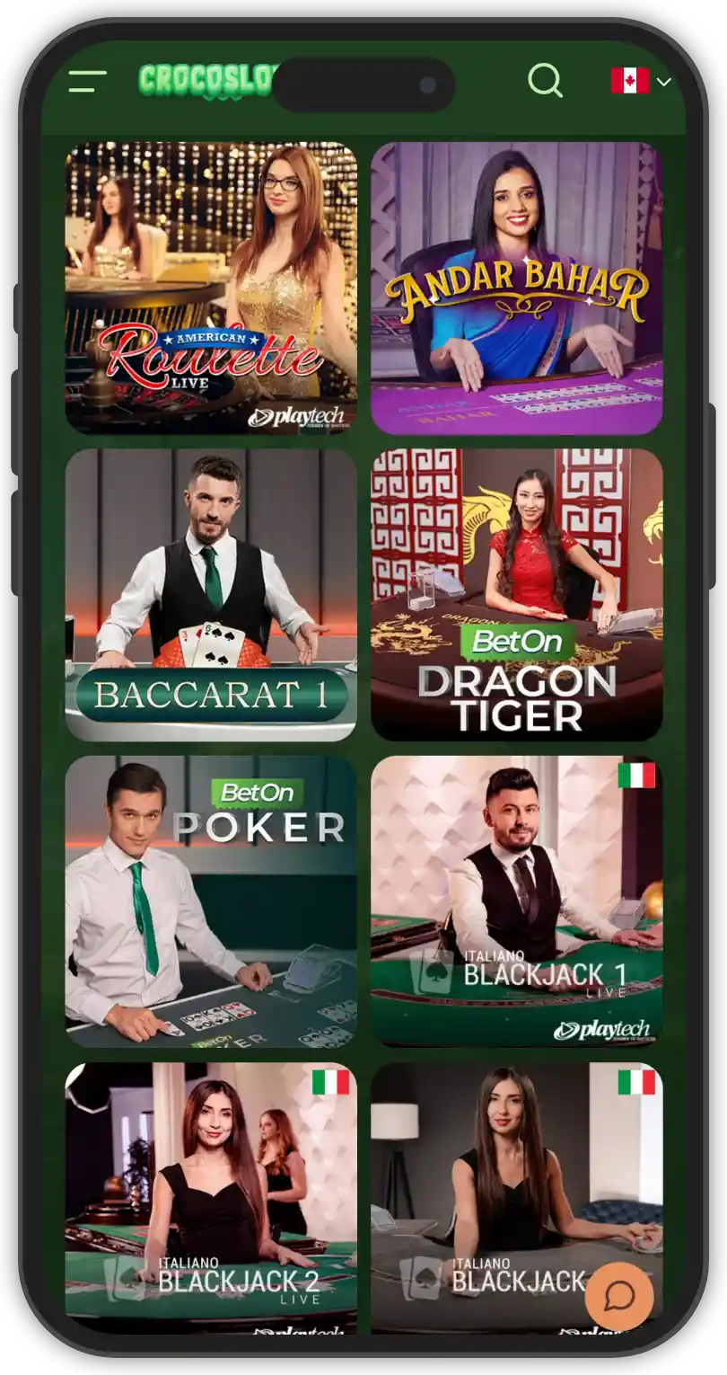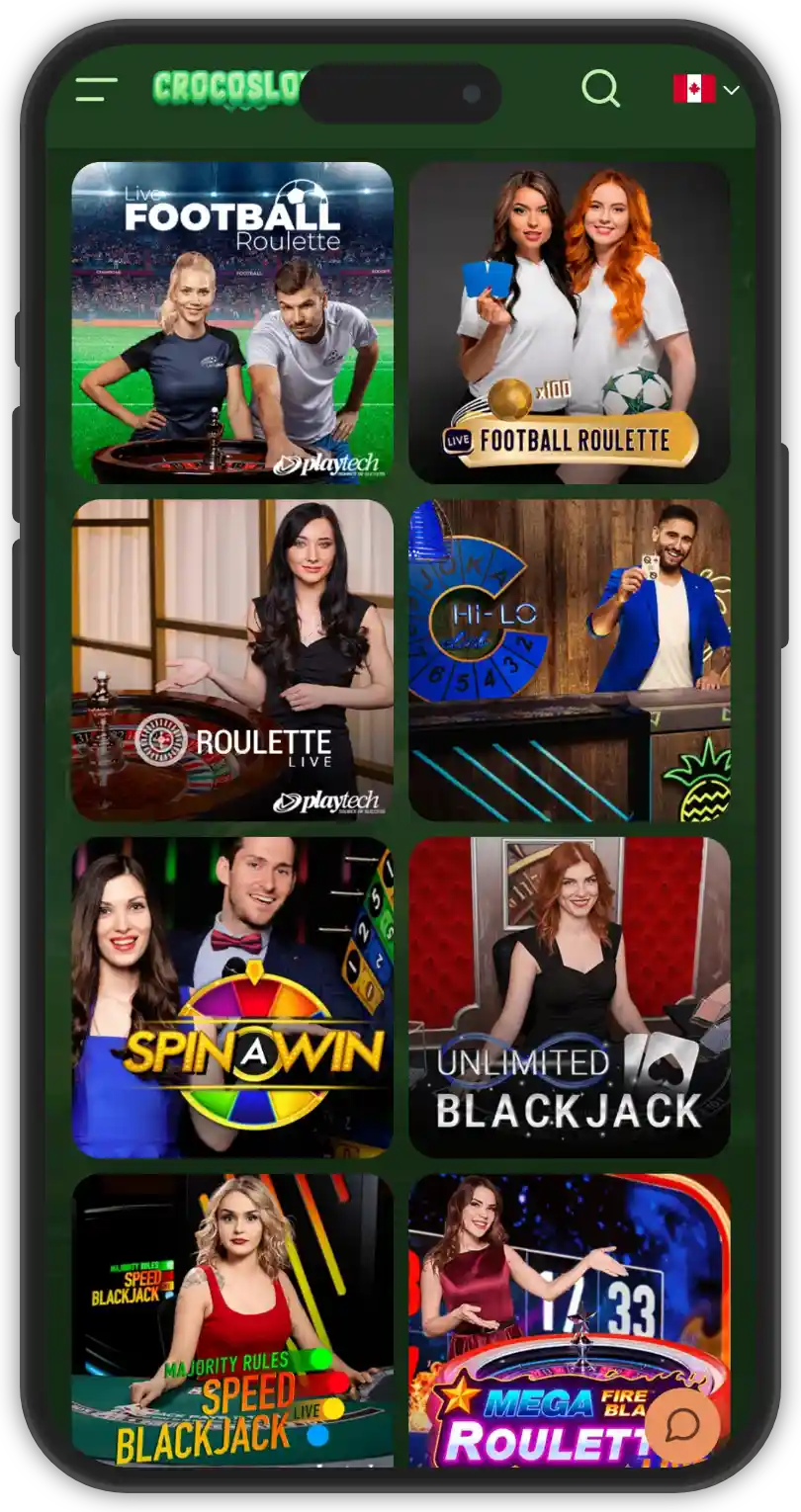 The live dealer section at Crocoslots Casino is powered by renowned providers like: