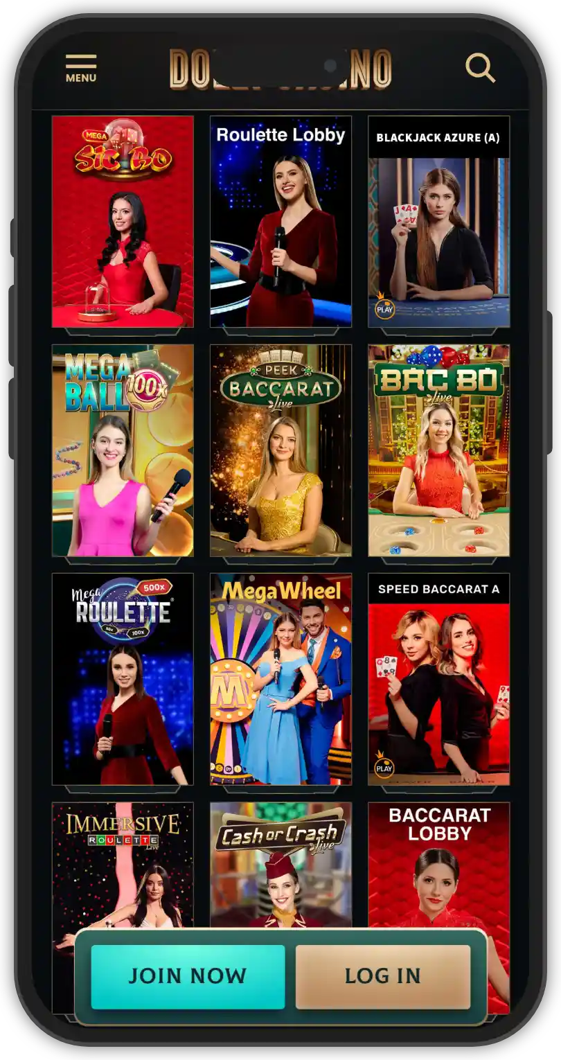 The live dealer section at Dolly Casino is powered by renowned providers like: