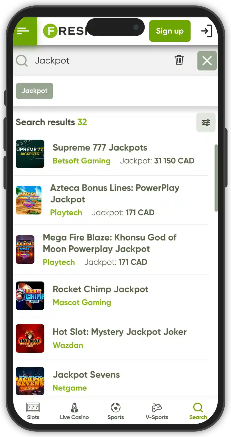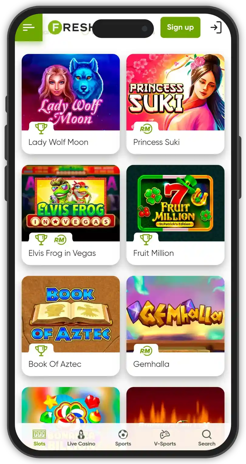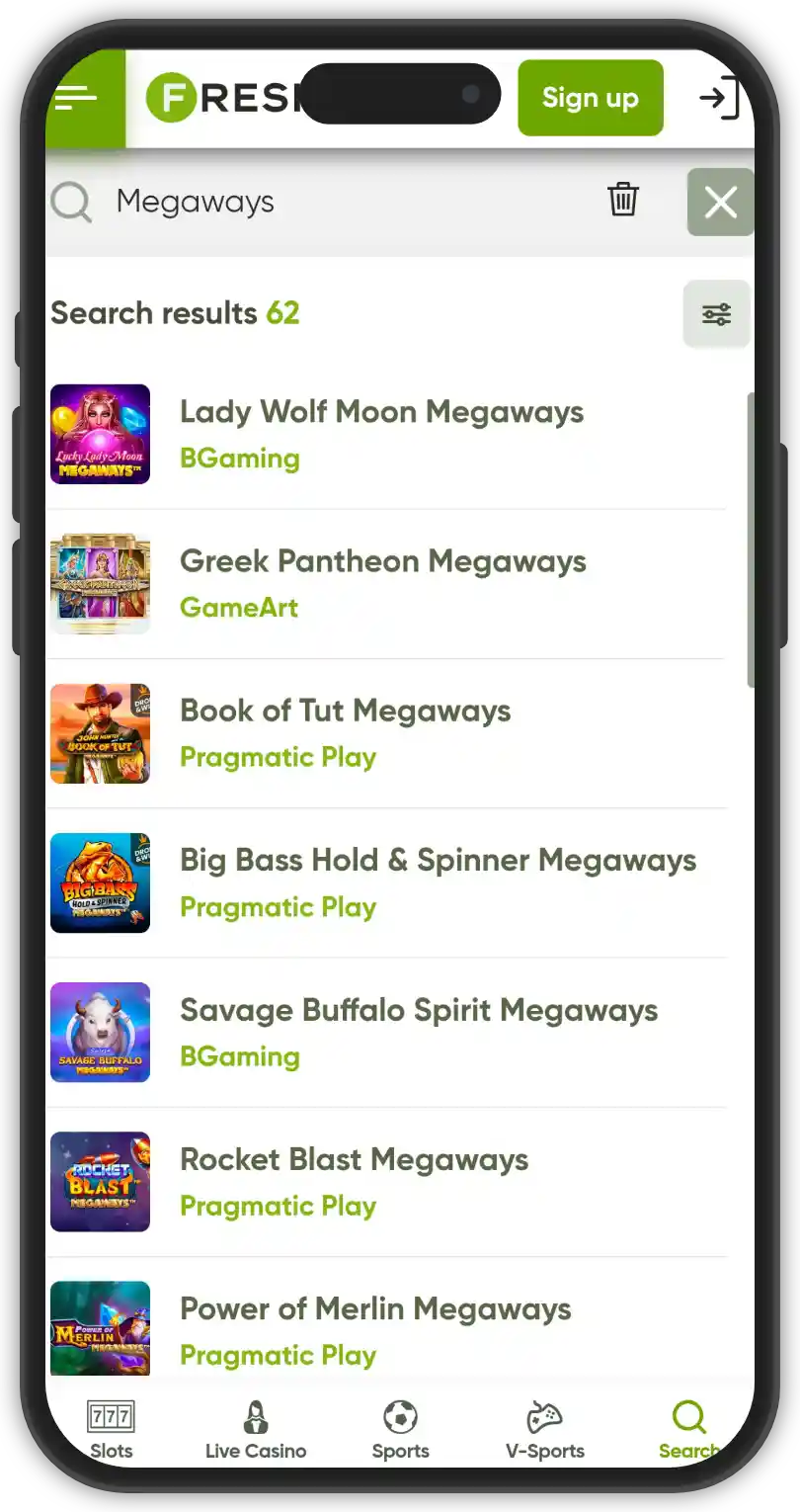 Fresh Casino boasts an impressive game library powered by 44 well-established and popular providers. The website features over 5,000 slots and hundreds of progressive jackpots, magaways slots and table games in many interesting variants. The platform has a nice, bright design and is easy to navigate. All games are conveniently sorted in their respective categories, and there are decent filters for easy access.