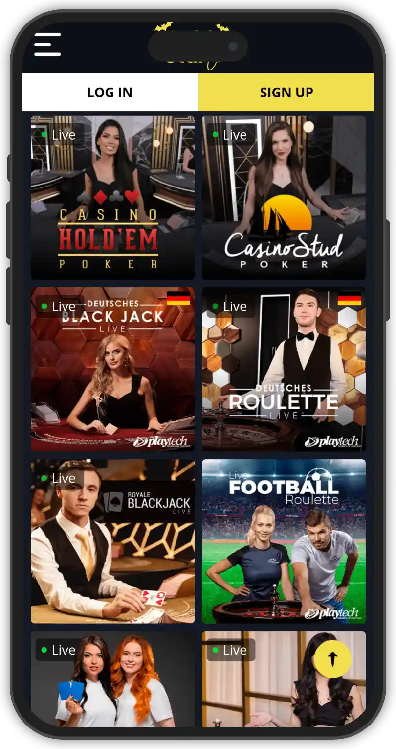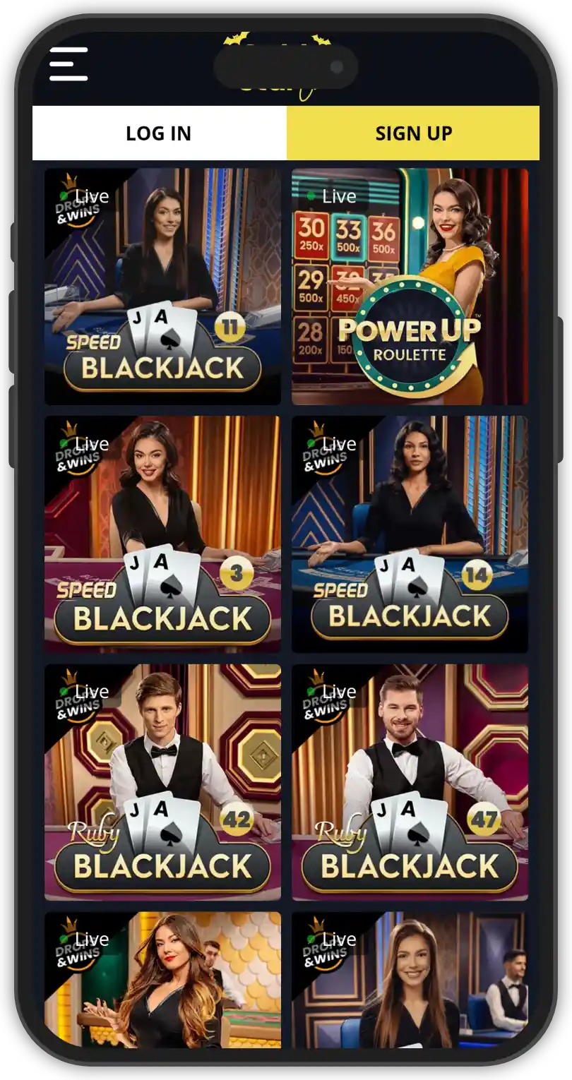 The live dealer section at Golden Star Casino nicely covers blackjack and roulette tables with plenty of variety and interesting variants. However, there are no baccarat games and just a few poker lobbies. Some popular game shows are featured on the platform like Sweet Bonanza Candyland, Mega Wheel and Deal or No Deal. The live casino games are all mashed together in one category, so it’s inconvenient to find your preferred game.