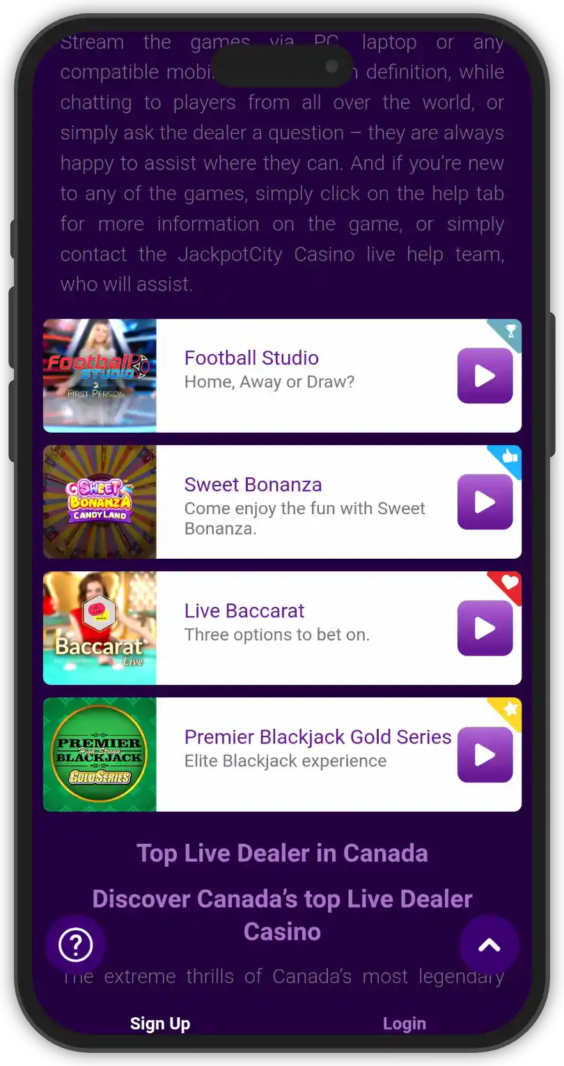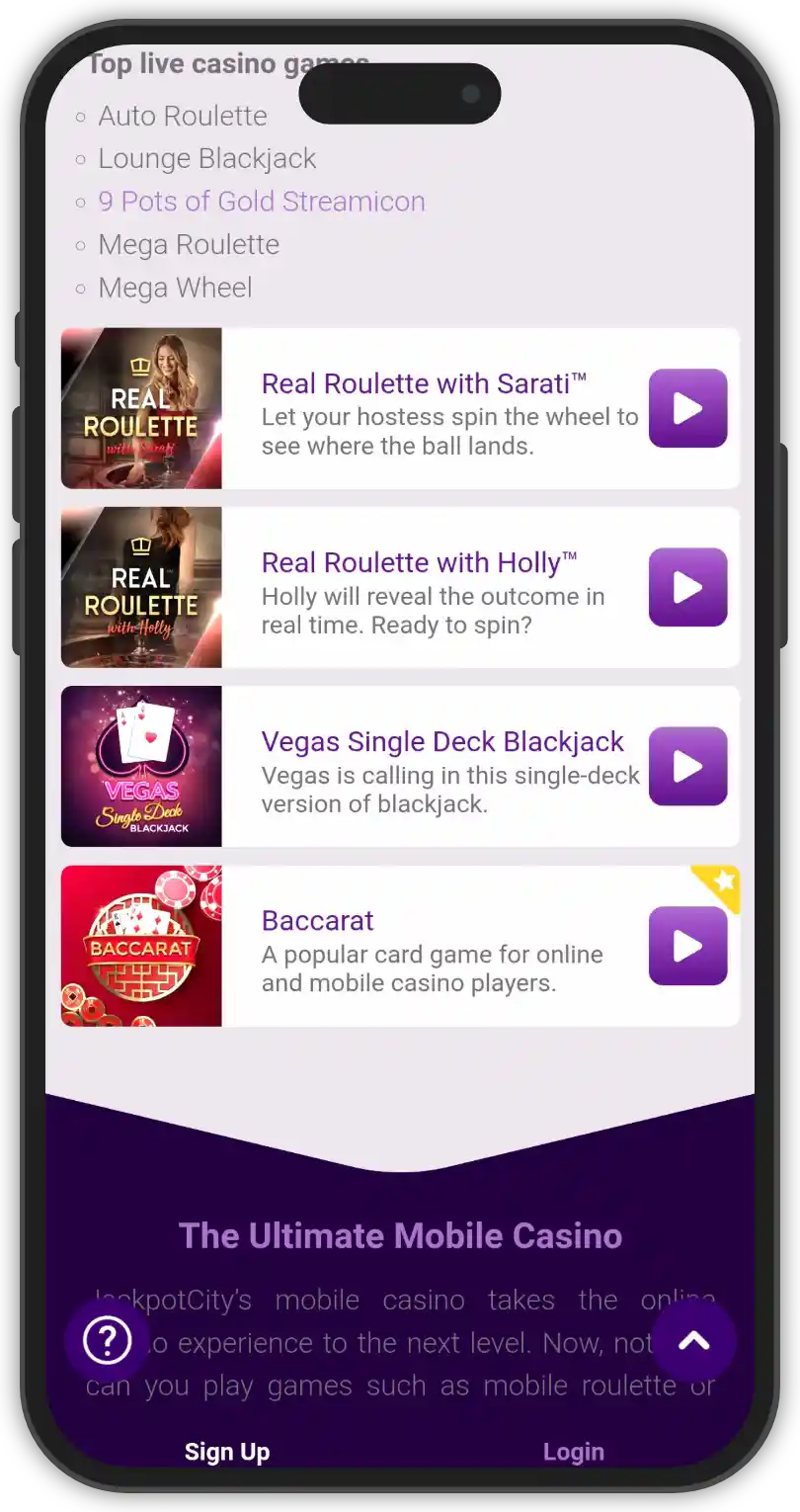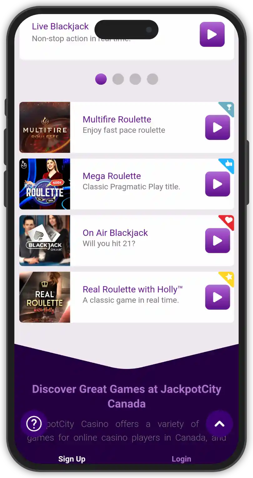 Powered by Ezugi and Evolution Gaming, the live casino at Jackpot City is nothing short of excellent. There are over 150 games in the lobby ranging from classic to exotic live blackjack, live roulette, live baccarat, and game show titles.