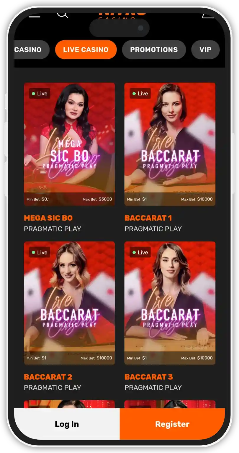 | Live baccarat | 16 |