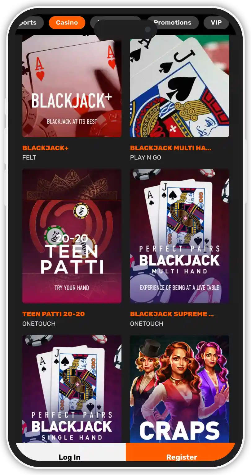 | Live blackjack | 40 |