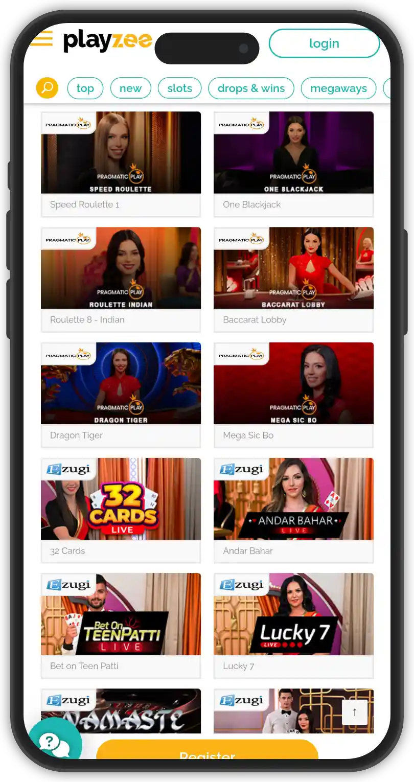 Click on the Live Casino tab and it’ll present all the live dealer games on offer. Playzee has done well to include games from the top live dealer software studios, including Evolution Gaming, Ezugi, and Pragmatic Play Live.