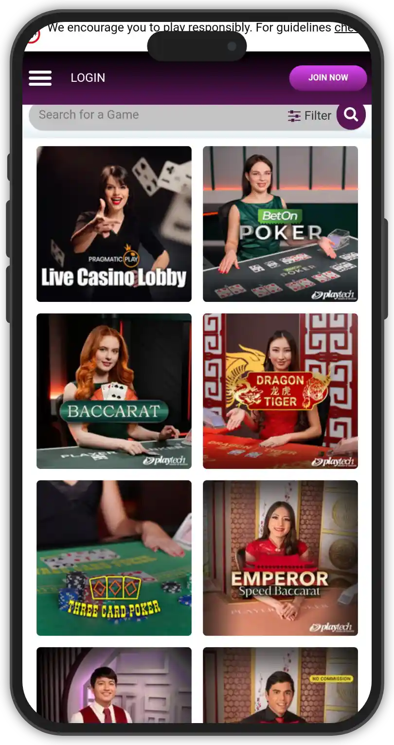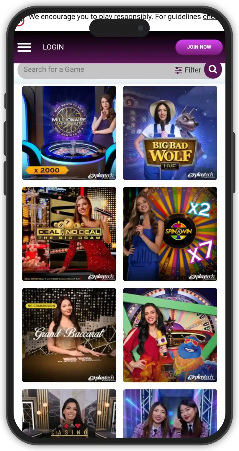 The live dealer section at Slots Magic Casino is powered by renowned providers Playtech and Pragmatic Play Live.