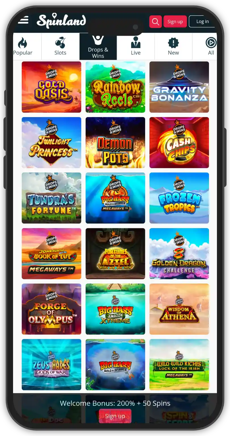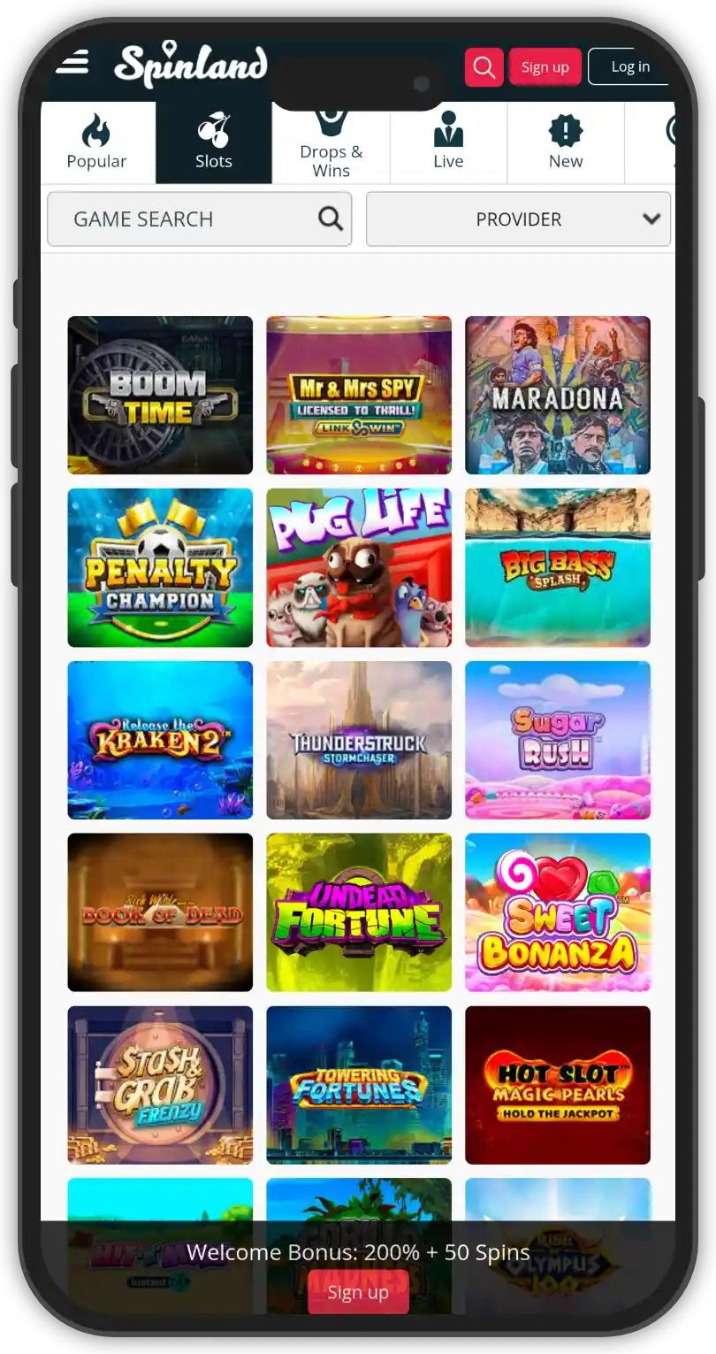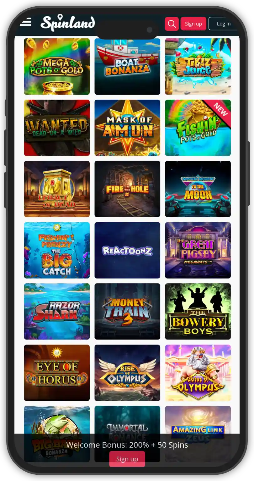 There are more than 2,000 games available at Spinland casino’s lobby. They are provided by more than 100 studios – 110 at the moment to be exact. The game variety is solid. You have everything from slots and jackpots to live casino games, so no problem on that part. Some of the game studios you’ll meet across the board include Pragmatic Play, NetEnt, Play’n GO, and other high-profile names.
