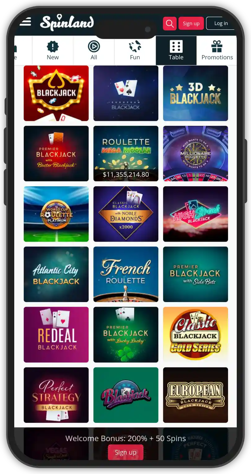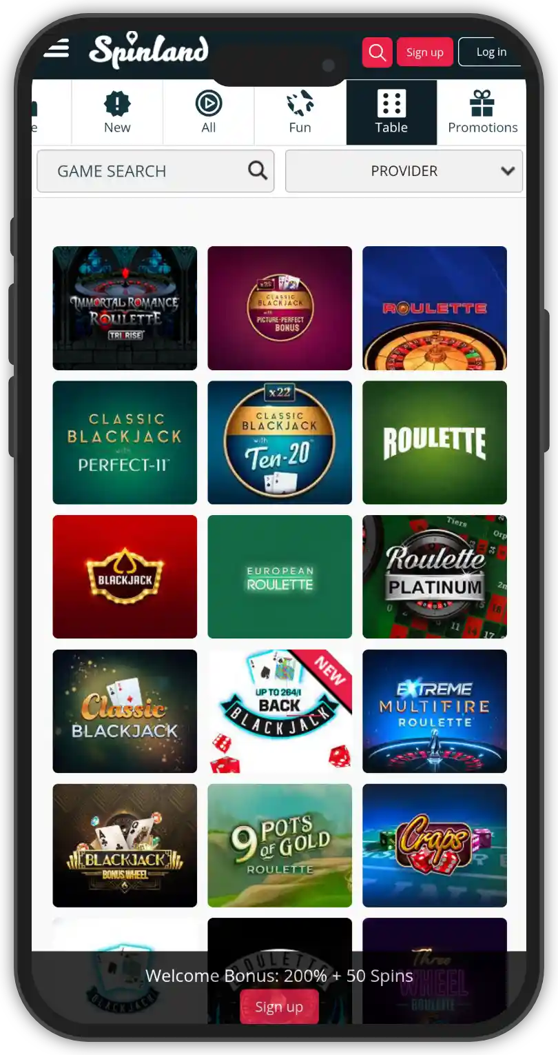 It may be a slot-centric casino, but Spinland’s got something for everyone in store. Live casino fans can look forward to a lobby stocked up on Evolution Gaming titles that include live roulette, live blackjack, and live baccarat variants along with game shows.