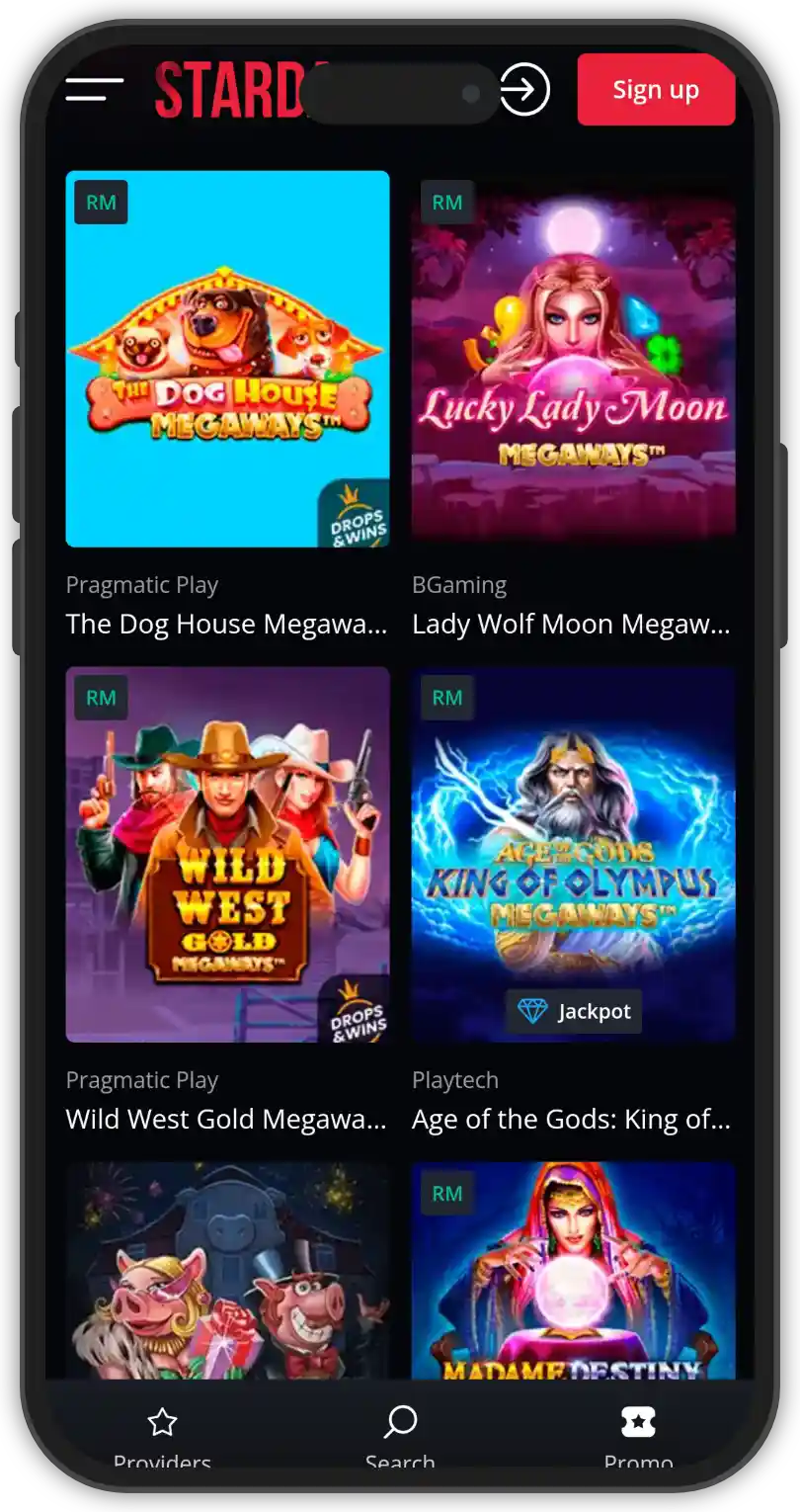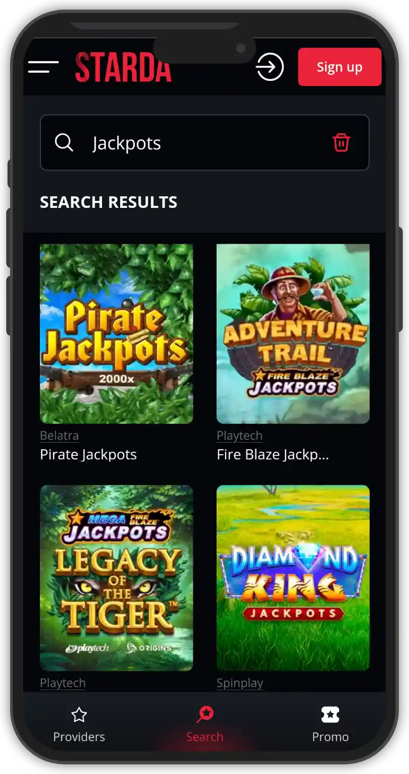 Starda’s game lobby organization is nothing short of stellar. The advanced filters makes finding new games a breeze. There’s a separate tab for table games which puts slots in their own category. On top of that, you can also list the games by collections or providers, so it’s a 10/10 in this department. Some of the largest studio names you’ll see in the casino’s lobby include Play’n GO, NetEnt, NoLimit City, and Relax Gaming.