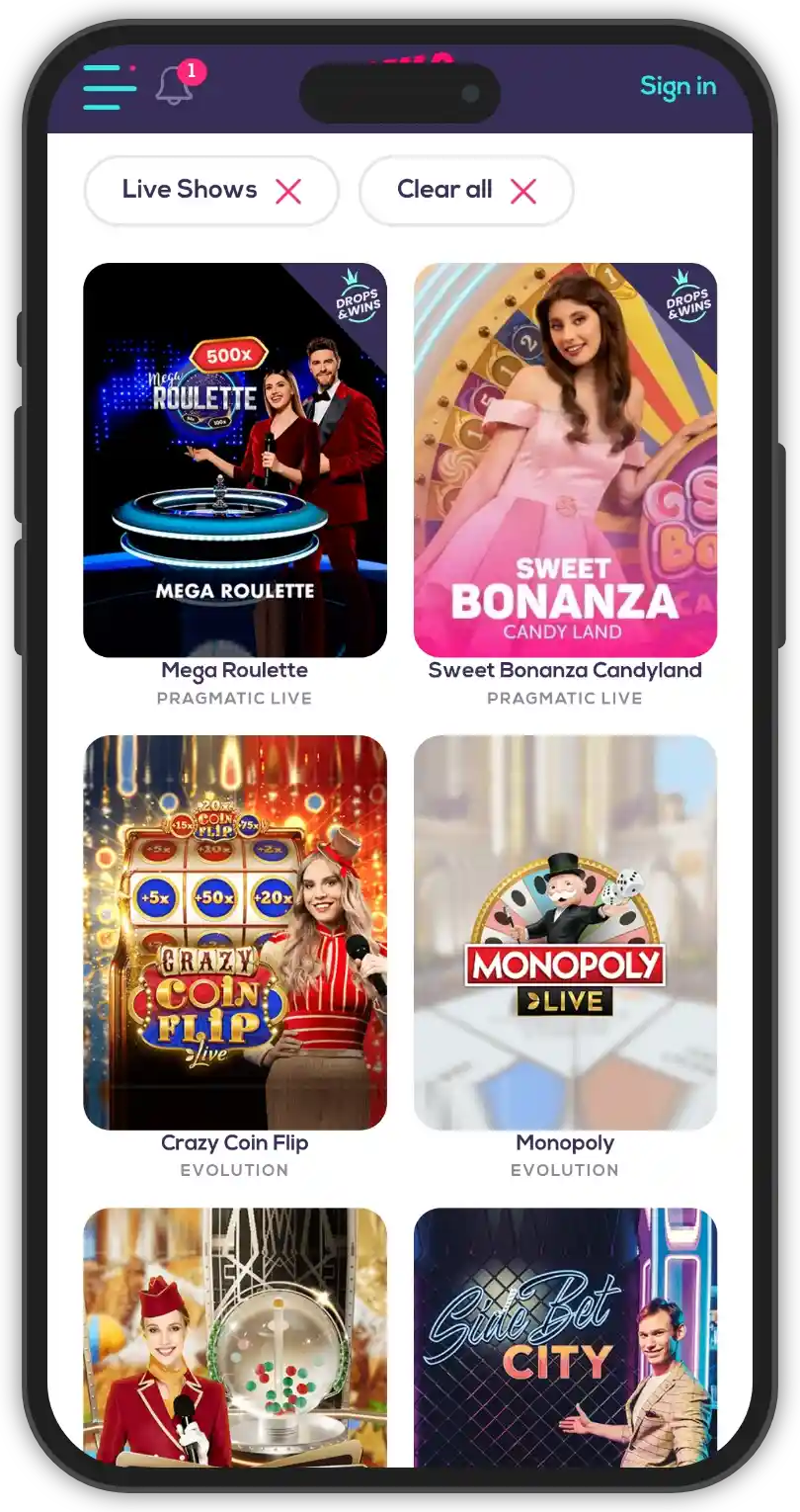 The live dealer section at Wild Fortune Casino features an impressive collection of over 600 high-quality table and card games and live casino lobbies. Players can find a plentiful selection of hundreds of blackjack tables in interesting variants. Additionally, there is an abundance of roulette and baccarat tables in many national and fast-paced variations, as well as the highly popular Caribbean Stud Poker and Hold’em alternatives. The platform also features a variety of popular live shows like Dream Catcher, Side Bet City, Crazy Time and many more.