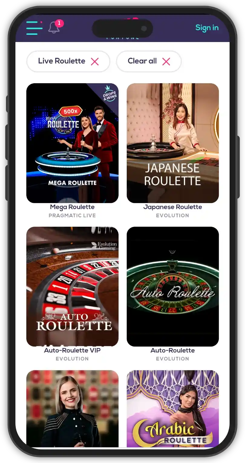 All games in the live dealer section are suitably sorted into their respective categories for easier accessibility and player convenience.